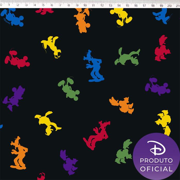 Tecido Tricoline Disney Personagens Coloridos Fundo Preto
