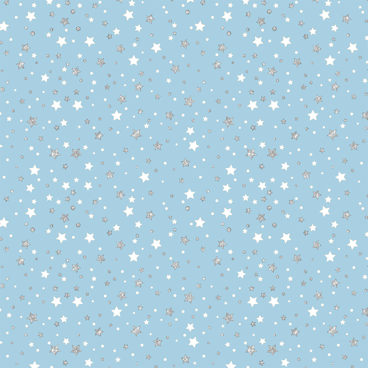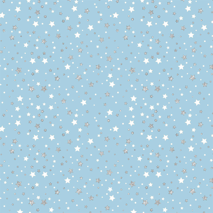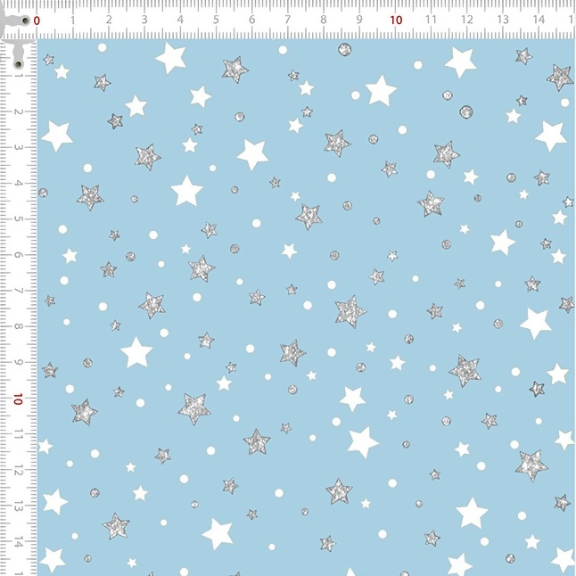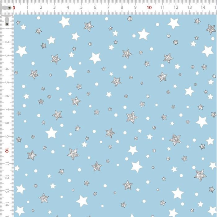 Descrição Tecido Tricoline Estrelas Brancas e Pratas Fundo Azul