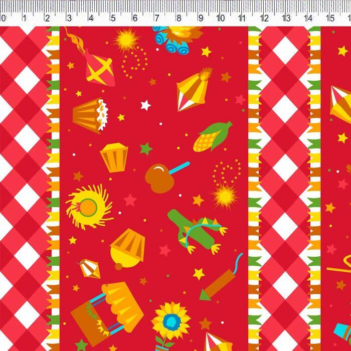 Tecido Tricoline Festa Junina Listrado Fundo Vermelho