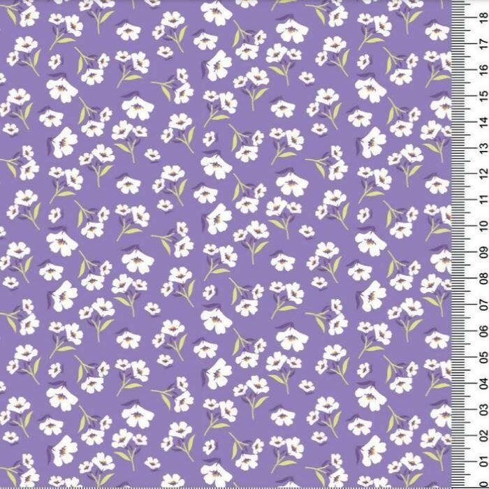 Descrição Tecido Tricoline Floral Branco Fundo Lilás