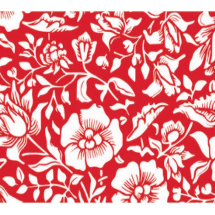 Tecido Tricoline Floral Branco Fundo Vermelho