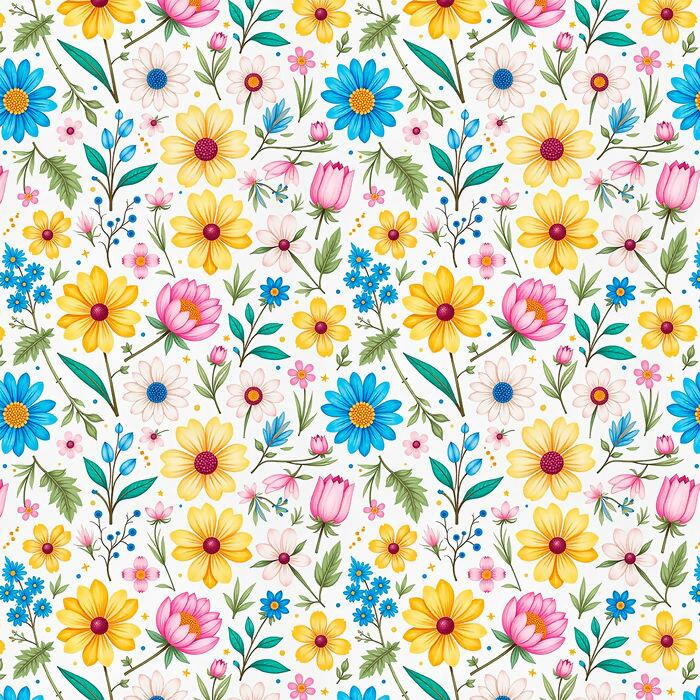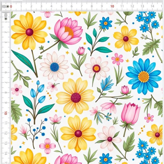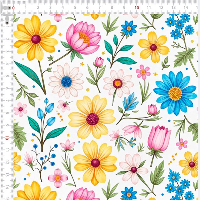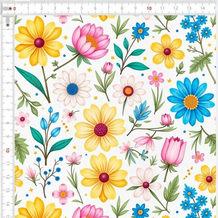 Descrição Tecido Tricoline Floral Colorido Fundo Branco