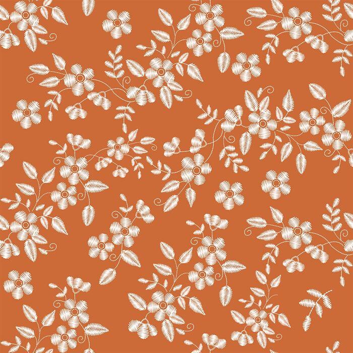Descrição Tecido Tricoline Floral Fundo Laranja