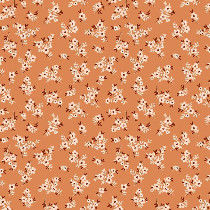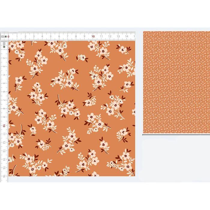 Descrição Tecido Tricoline Floral Fundo Laranja