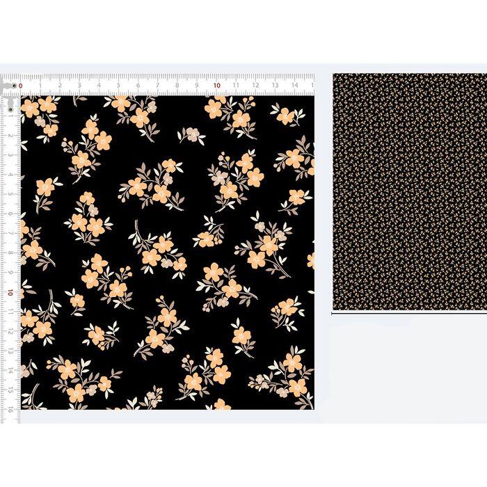 Descrição Tecido Tricoline Floral Fundo Preto