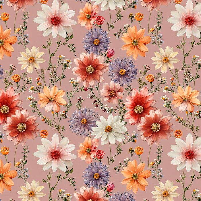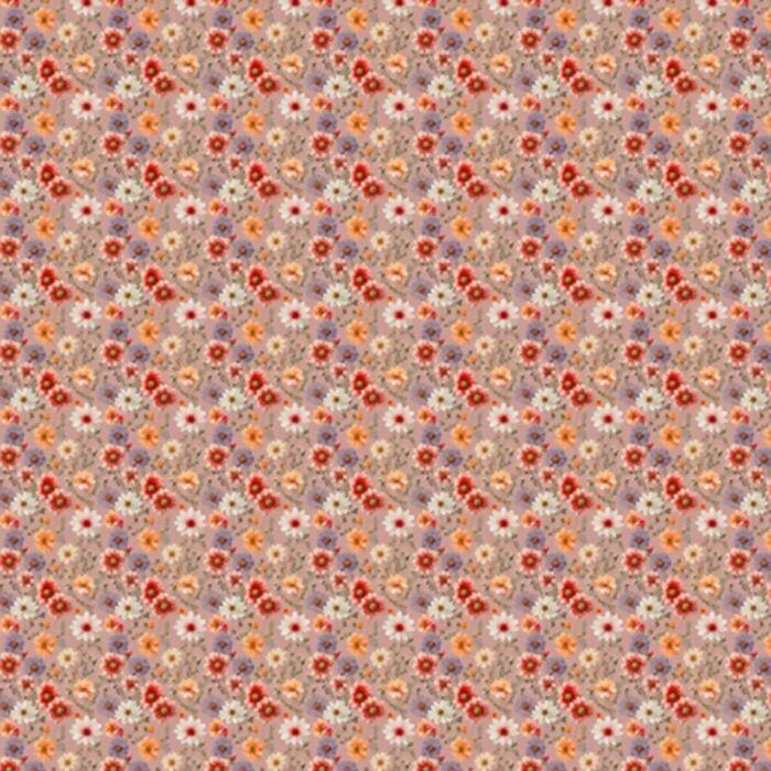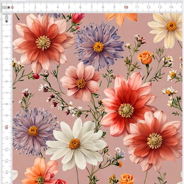 Descrição Tecido Tricoline Floral Fundo Rosa Antigo