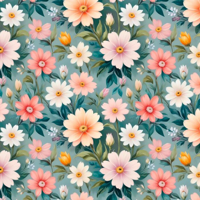 Descrição Tecido Tricoline Floral Fundo Verde Azulado