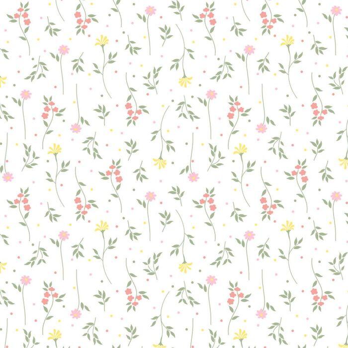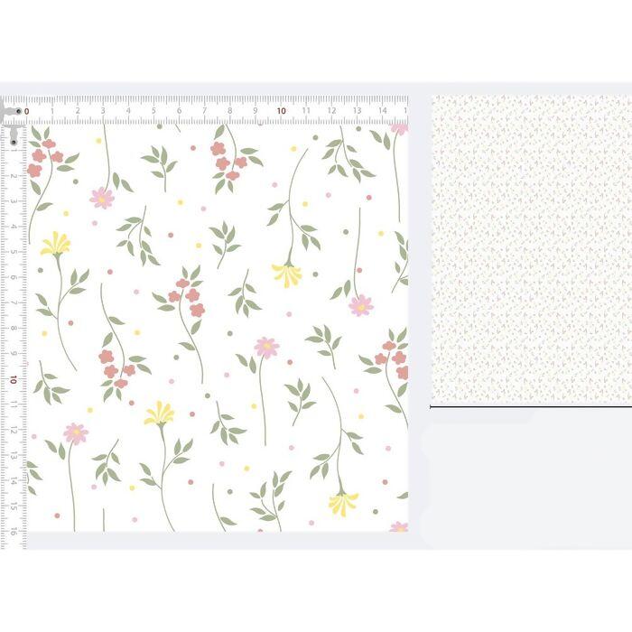 Descrição Tecido Tricoline Floral Galhos Fundo Branco