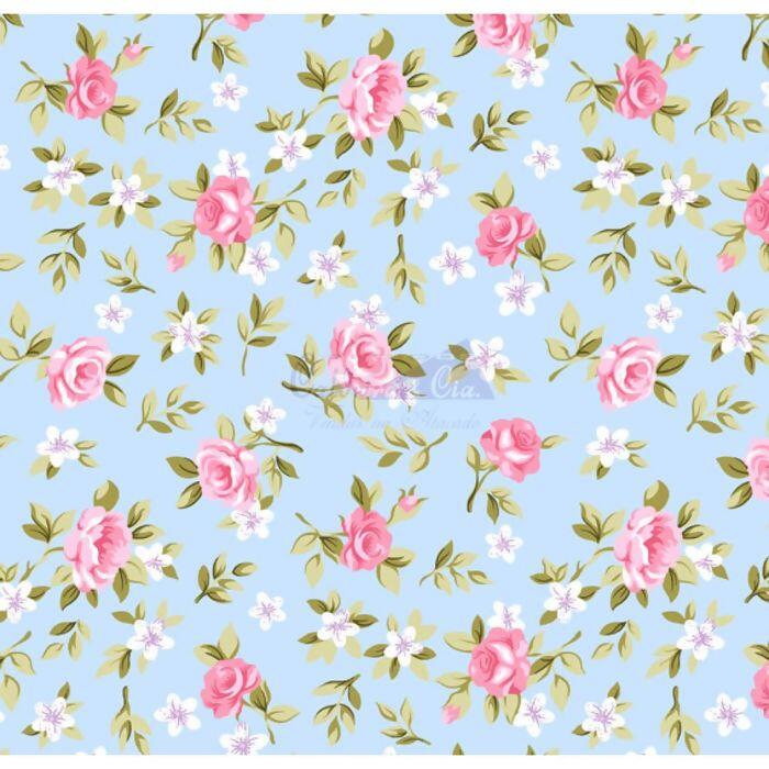 Tecido Tricoline Floral Lúcia Azul Claro
