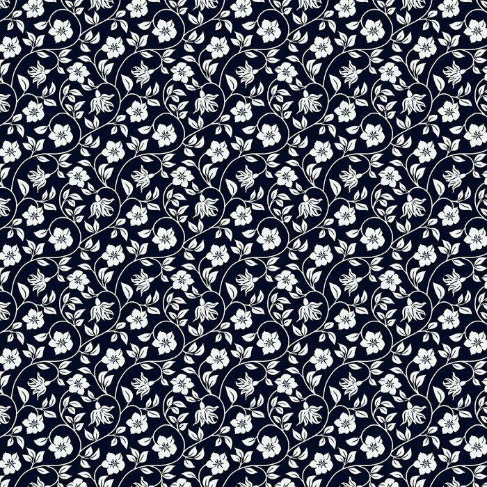 Descrição Tecido Tricoline Floral Ramos fundo Azul