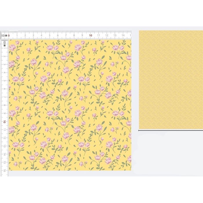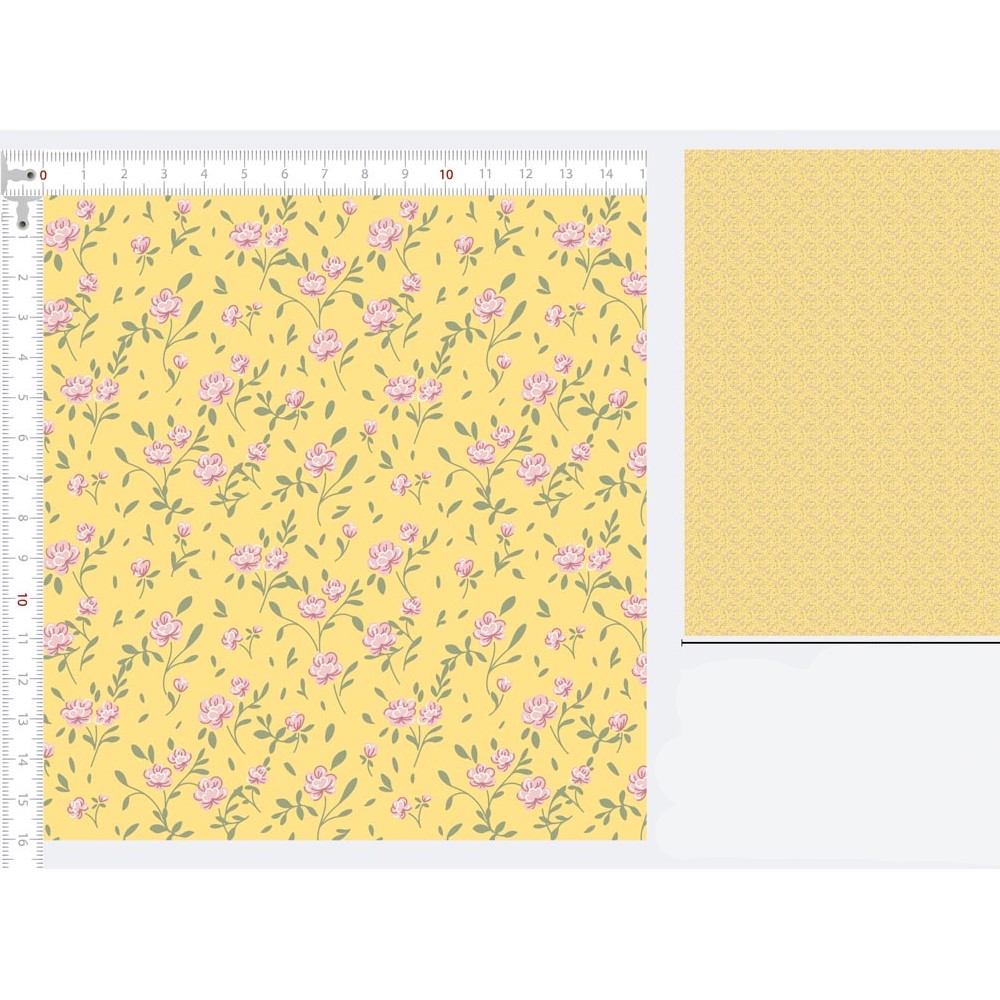 Descrição Tecido Tricoline Floral Rosa Fundo Amarelo