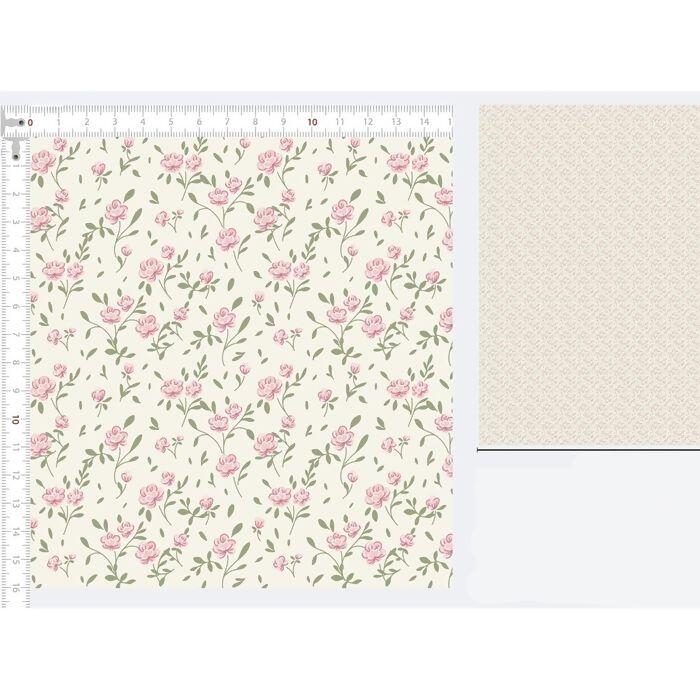 Descrição Tecido Tricoline Floral Rosa Fundo Branco