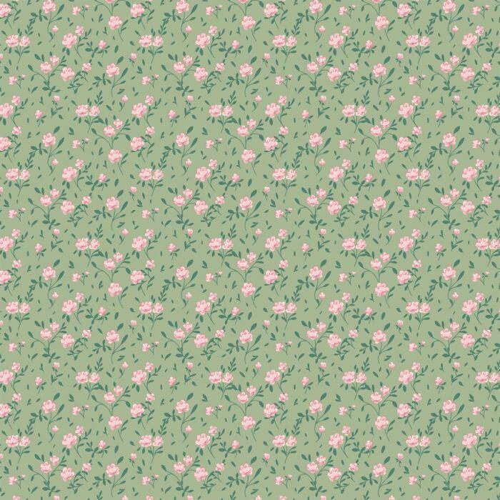 Tecido Tricoline Floral Rosa Fundo Verde Claro