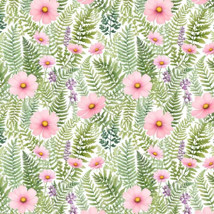 Descrição Tecido Tricoline Floral Samambaia e Flores