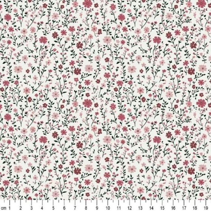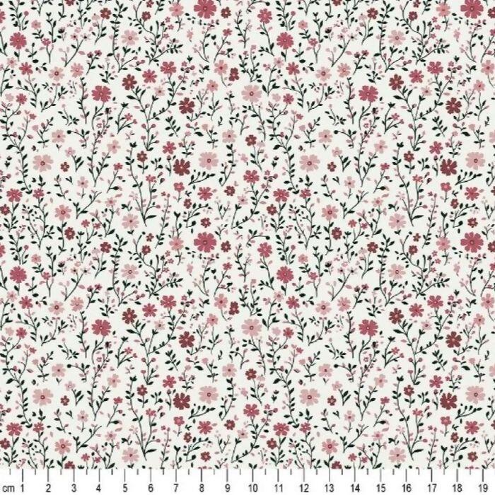 Tecido Tricoline Floral Vintage Rose