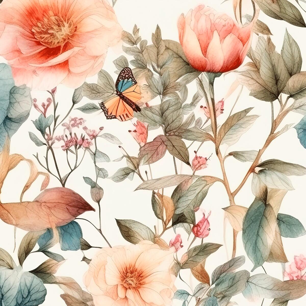 Tecido Tricoline Flores Borboletas Fundo Branco