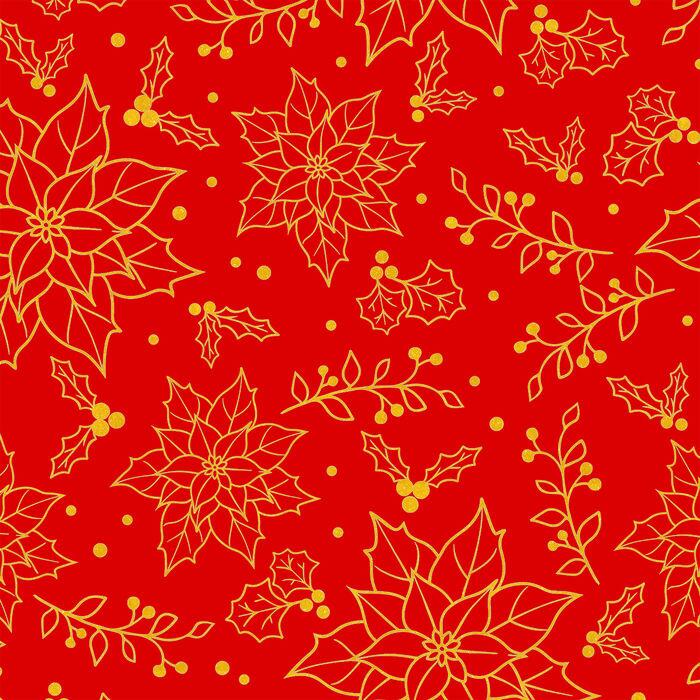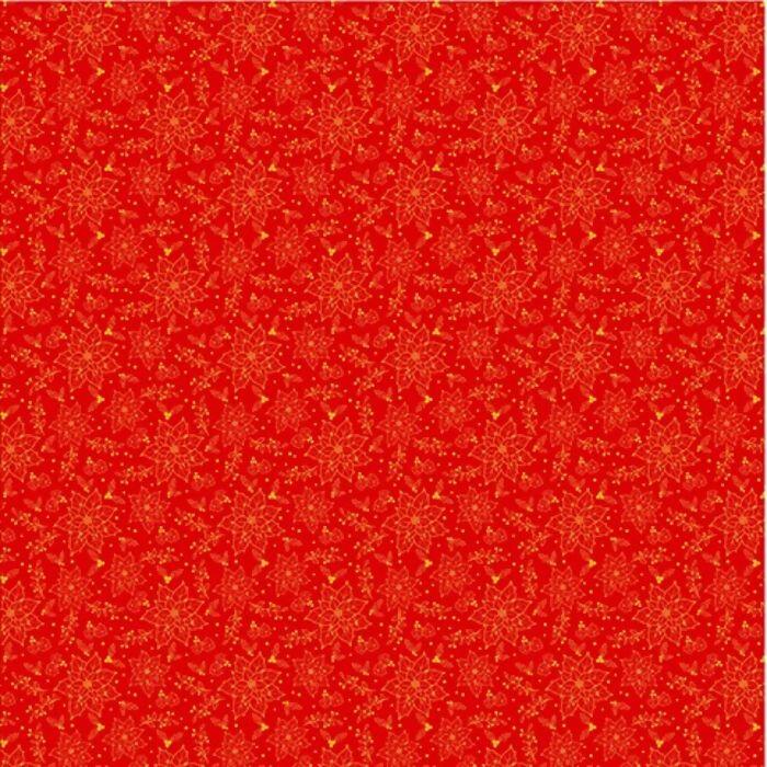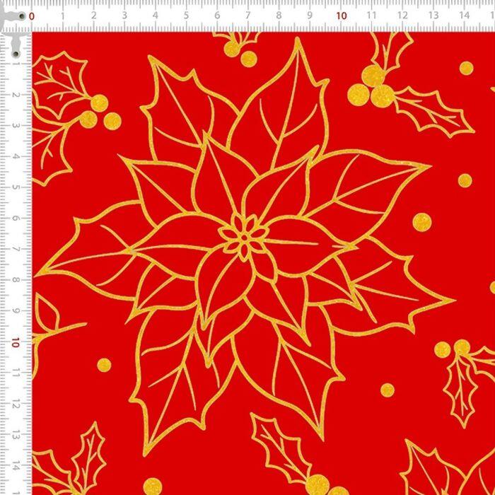 Tecido Tricoline Flores e Galhos Fundo Vermelho