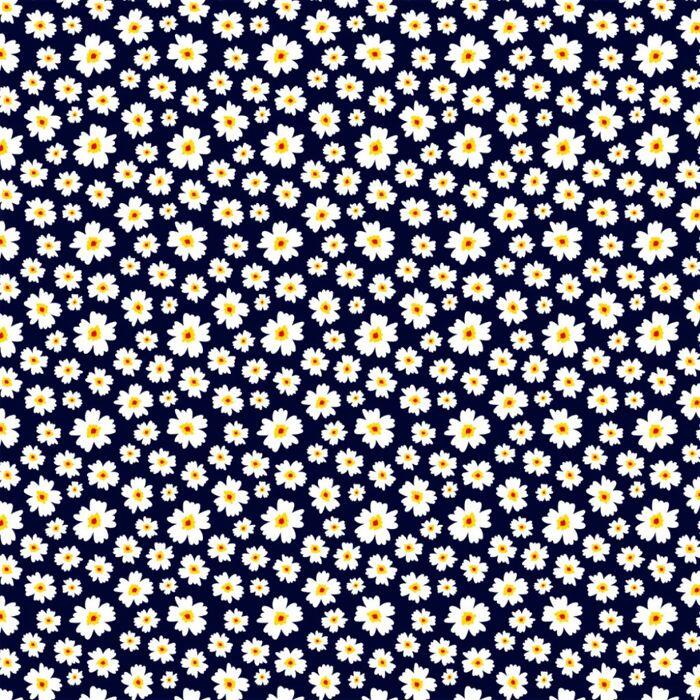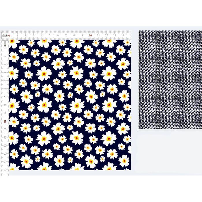 Descrição Tecido Tricoline Flores Fundo Azul Marinho