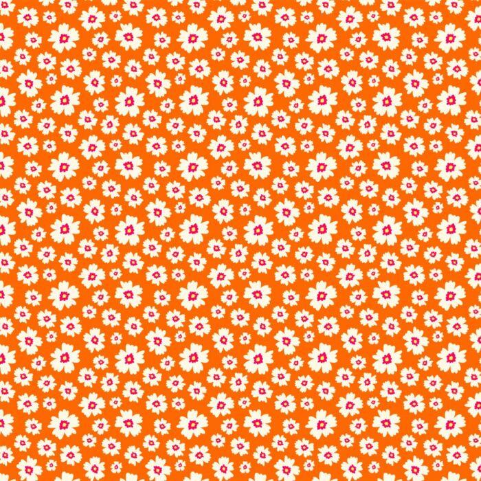 Descrição Tecido Tricoline Flores Fundo Laranja