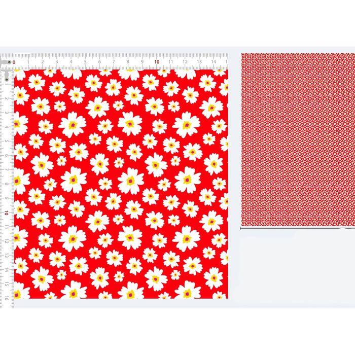 Descrição Tecido Tricoline Flores Fundo Vermelho