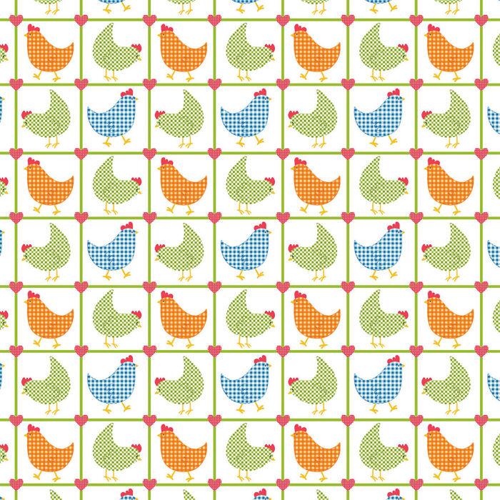 Tecido Tricoline Galinhas Coloridas Xadrez