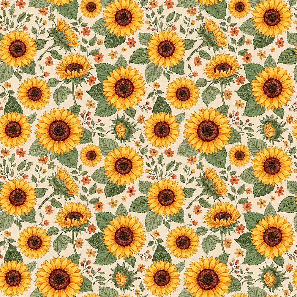 Tecido Tricoline Girassol Pequeno Fundo Claro