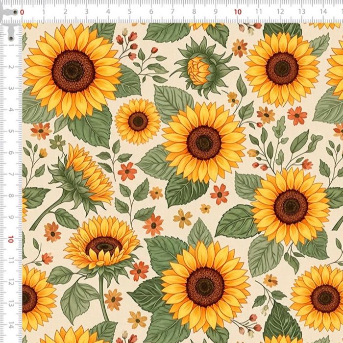 Descrição Tecido Tricoline Girassol Pequeno Fundo Claro
