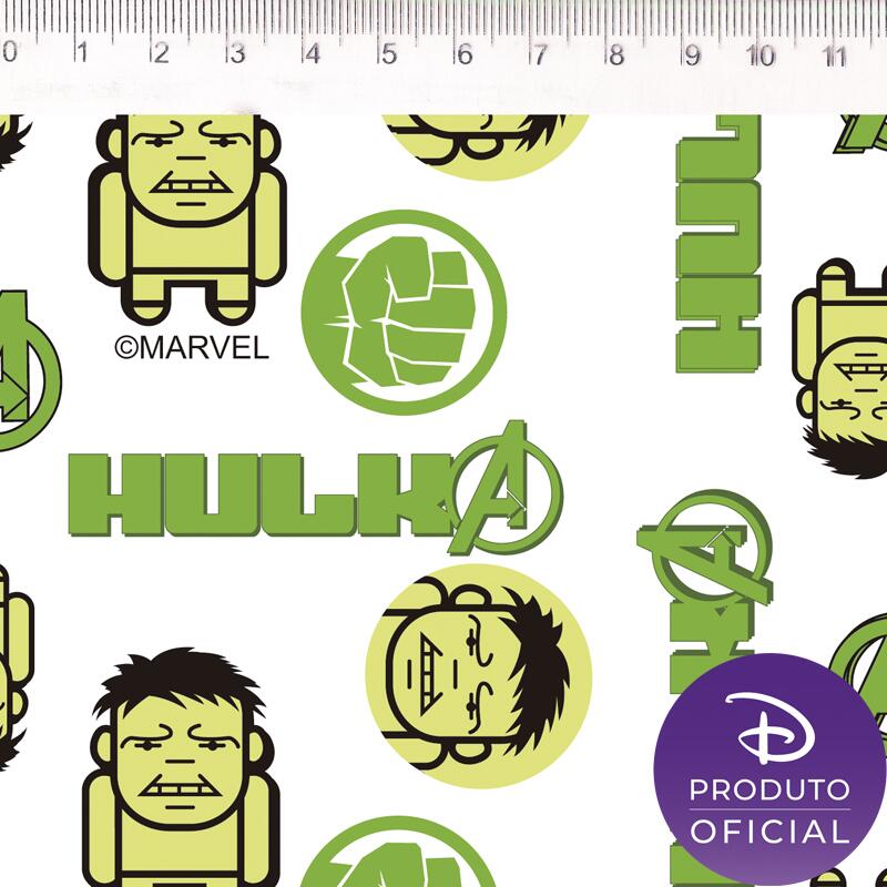 Descrição Tecido Tricoline Hulk Fundo Branco