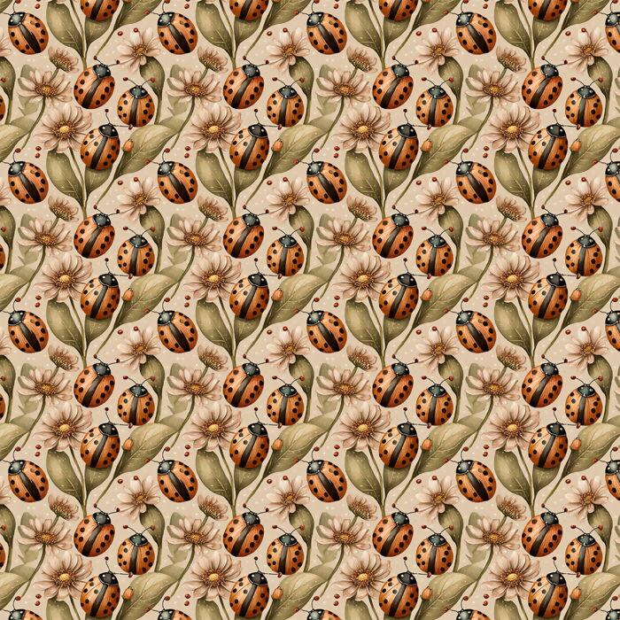 Descrição Tecido Tricoline Joaninha Fundo Marrom