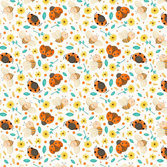 Descrição Tecido Tricoline Joaninhas e Abelhas Floral