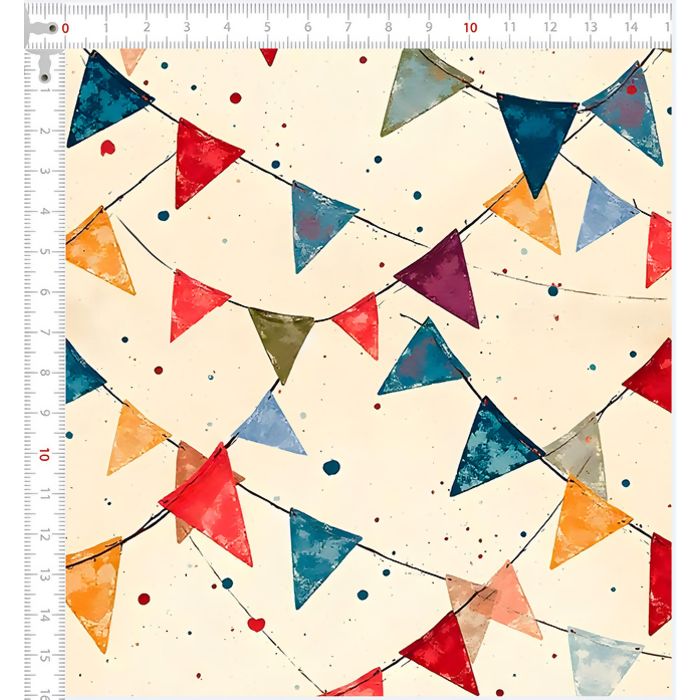 Tecido Tricoline Junino Bandeirinhas e Poá Fundo Creme