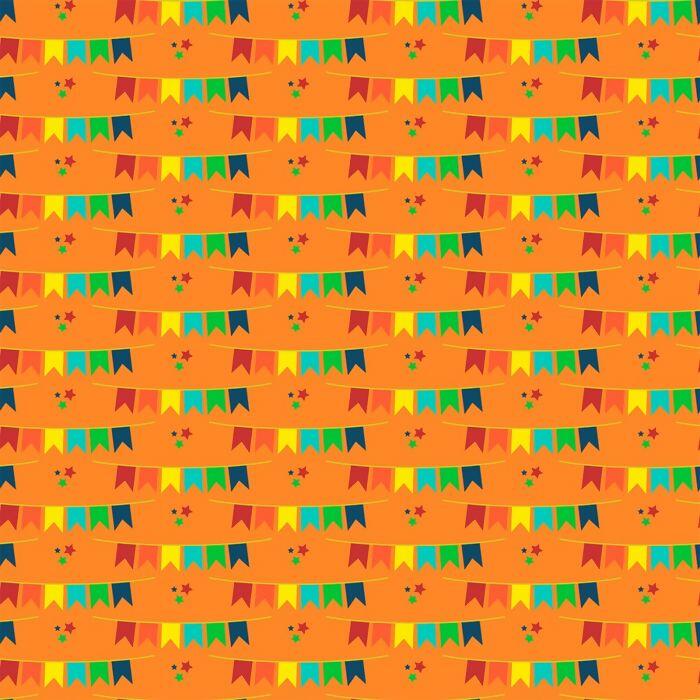 Tecido Tricoline Junino Bandeirinhas Fundo Laranja