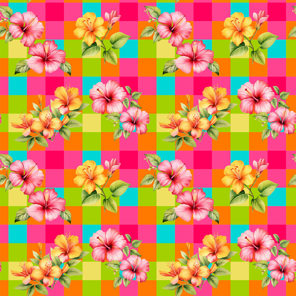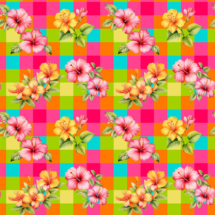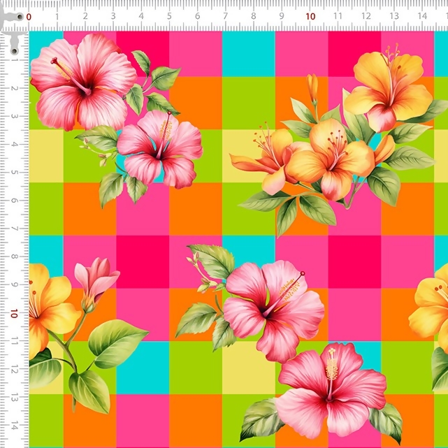 Tecido Tricoline Junino Flores Fundo Xadrez Colorido