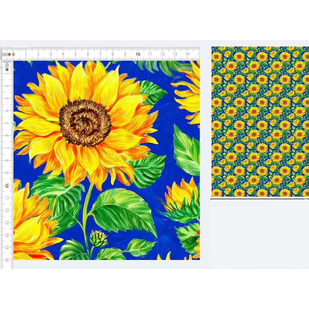 Descrição Tecido Tricoline Junino Girassol Fundo Azul
