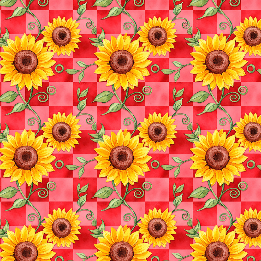 Tecido Tricoline Junino Girassol Quadrados Vermelhos