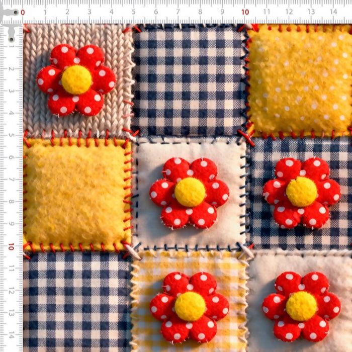Descrição Tecido Tricoline Junino Quadrados Flores Patchwork