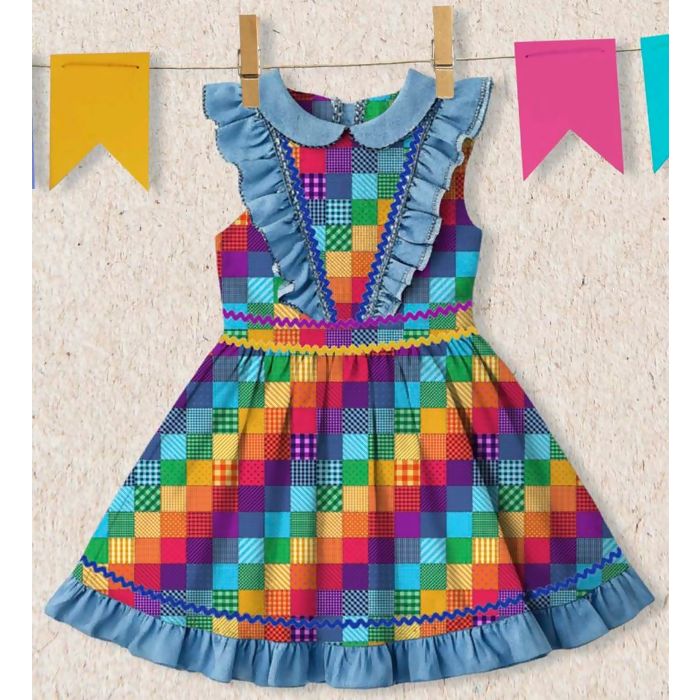 Descrição Tecido Tricoline Junino Quadrados Xadrez Coloridos
