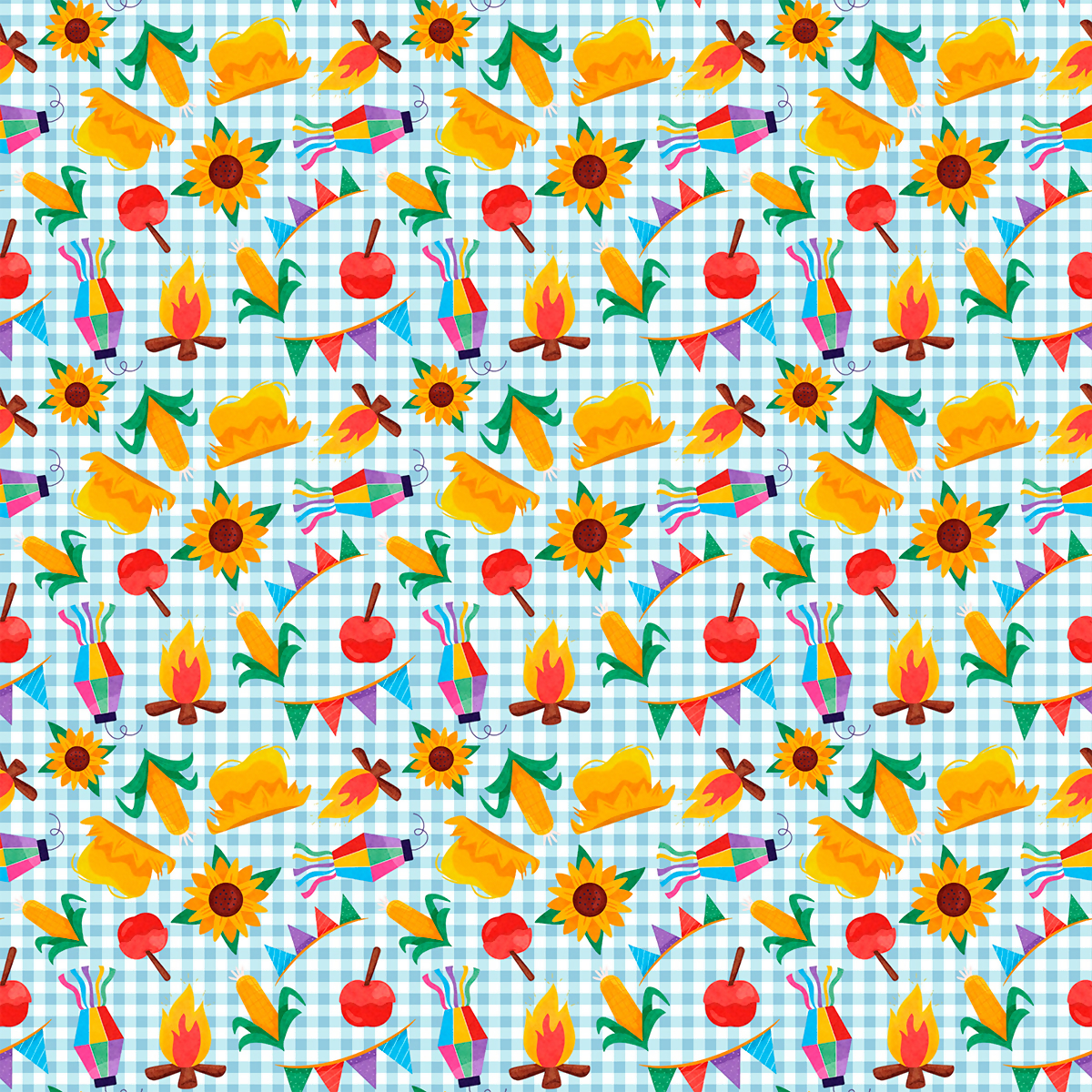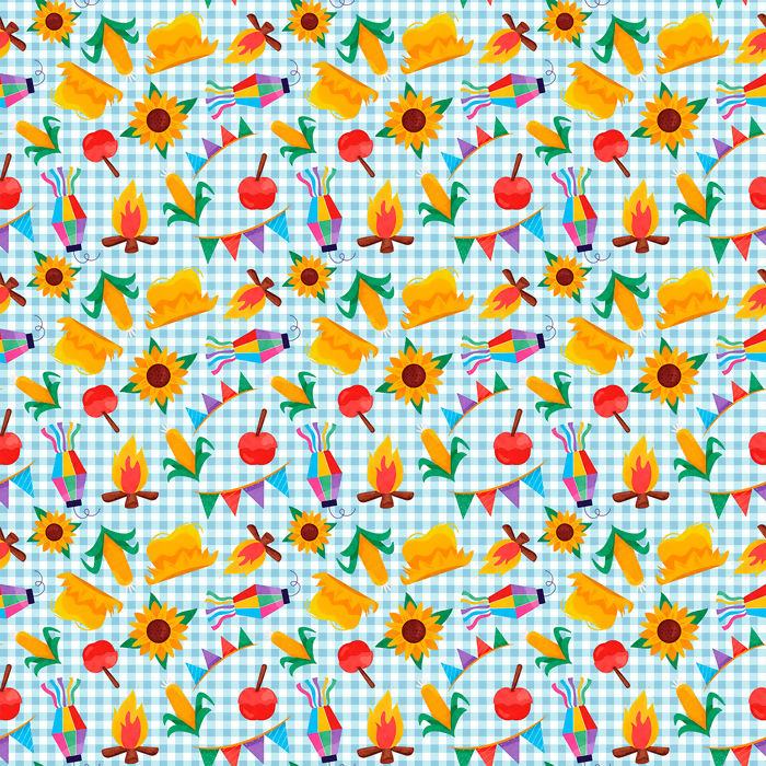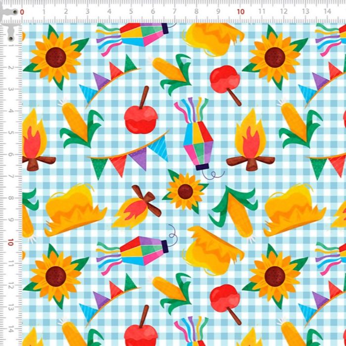 Tecido Tricoline Junino Xadrez Girassol Milho Fogueira