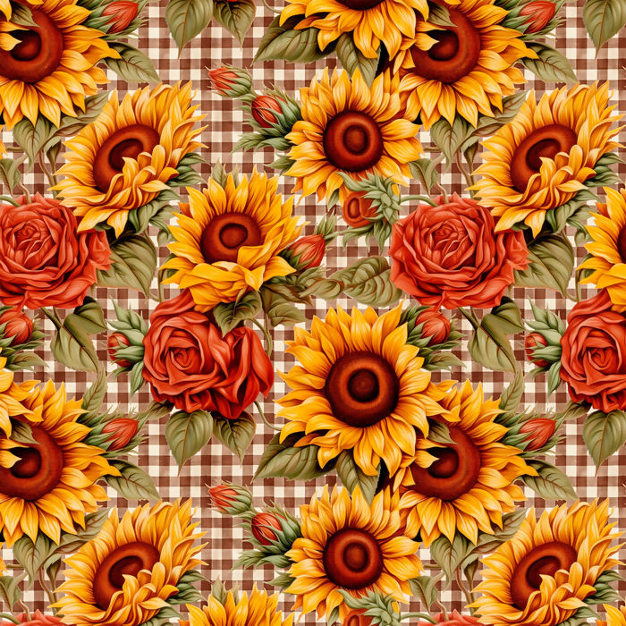 Tecido Tricoline Junino Xadrez Rosas e Girassóis
