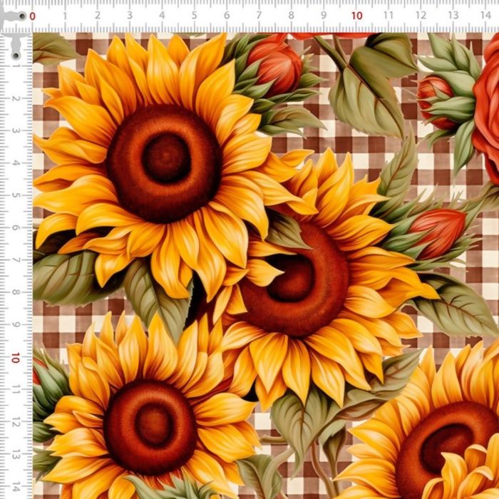 Descrição Tecido Tricoline Junino Xadrez Rosas e Girassóis