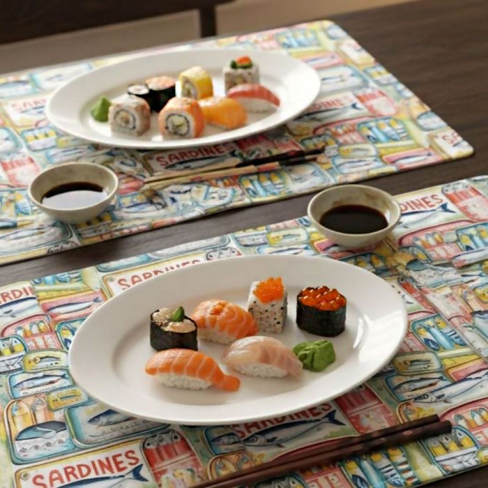 Tecido Tricoline Latas de Sardinhas Sobrepostas