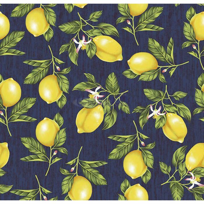 Tecido Tricoline Limão com Folhas Fundo Marinho