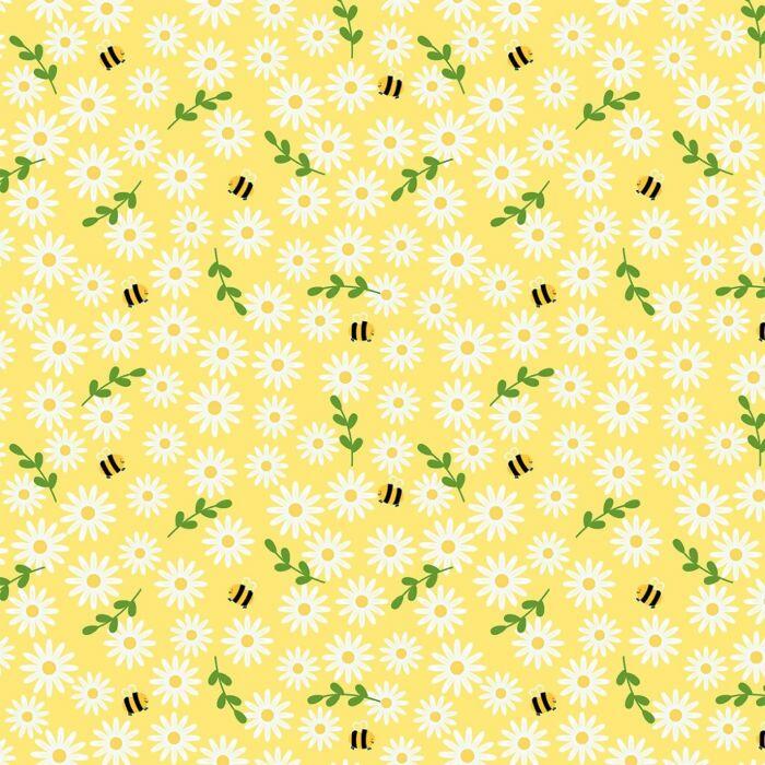 Tecido Tricoline Margarida Branca Fundo Amarelo