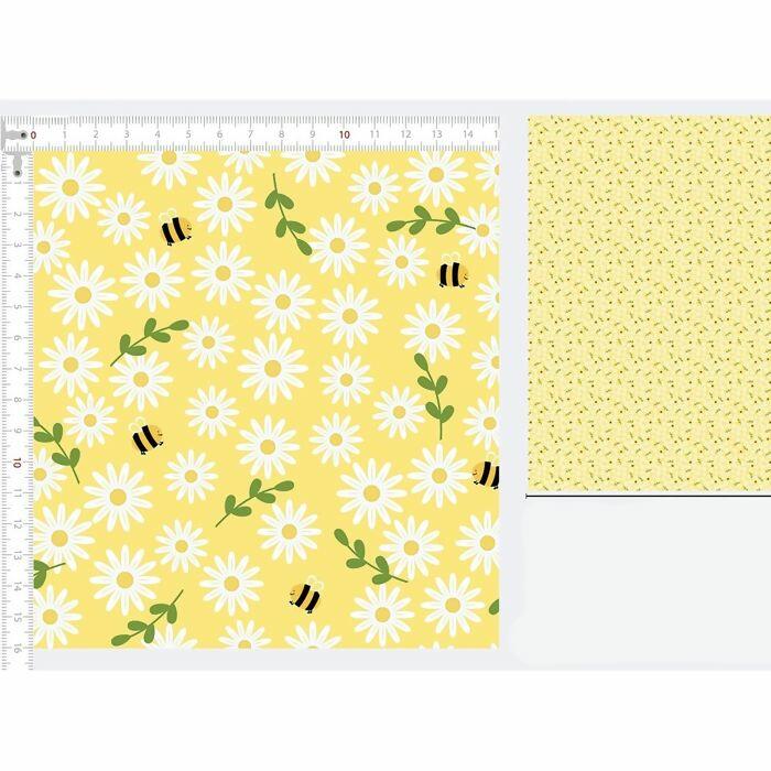 Descrição Tecido Tricoline Margarida Branca Fundo Amarelo