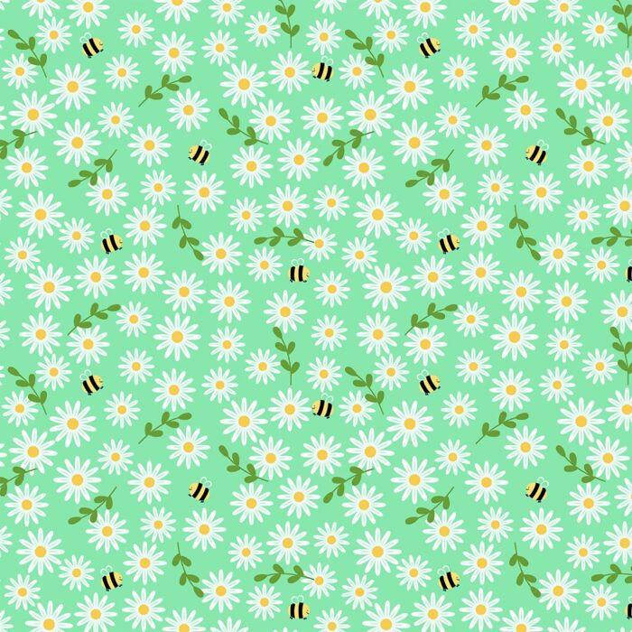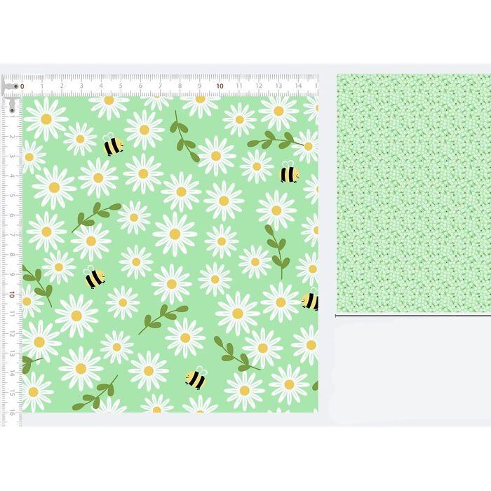 Descrição Tecido Tricoline Margarida Branca Fundo Verde Água