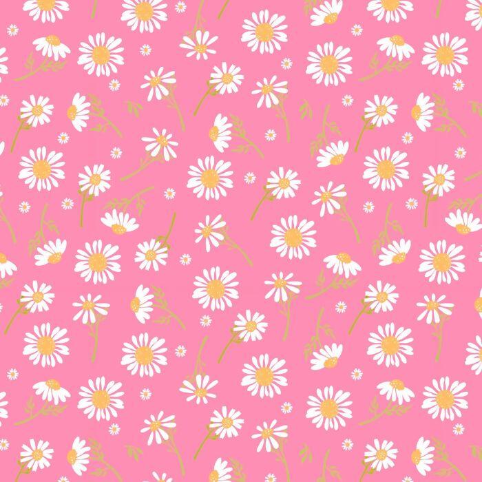Descrição Tecido Tricoline Margarida Fundo Rosa