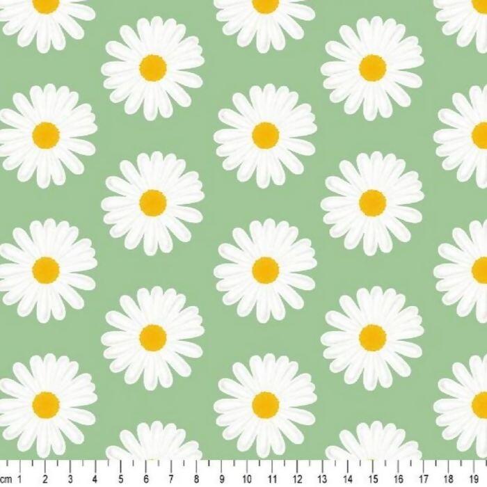 Tecido Tricoline Margaridas Brancas Fundo Verde