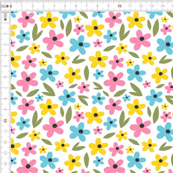 Descrição Tecido Tricoline Mini Florais Fundo Branco
