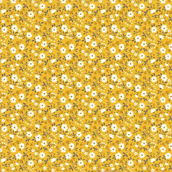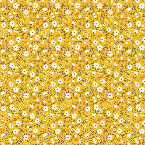 Tecido Tricoline Mini Florzinha Fundo Amarelo