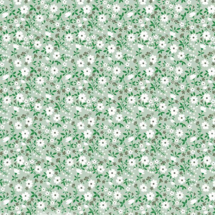 Tecido Tricoline Mini Florzinha Fundo Verde